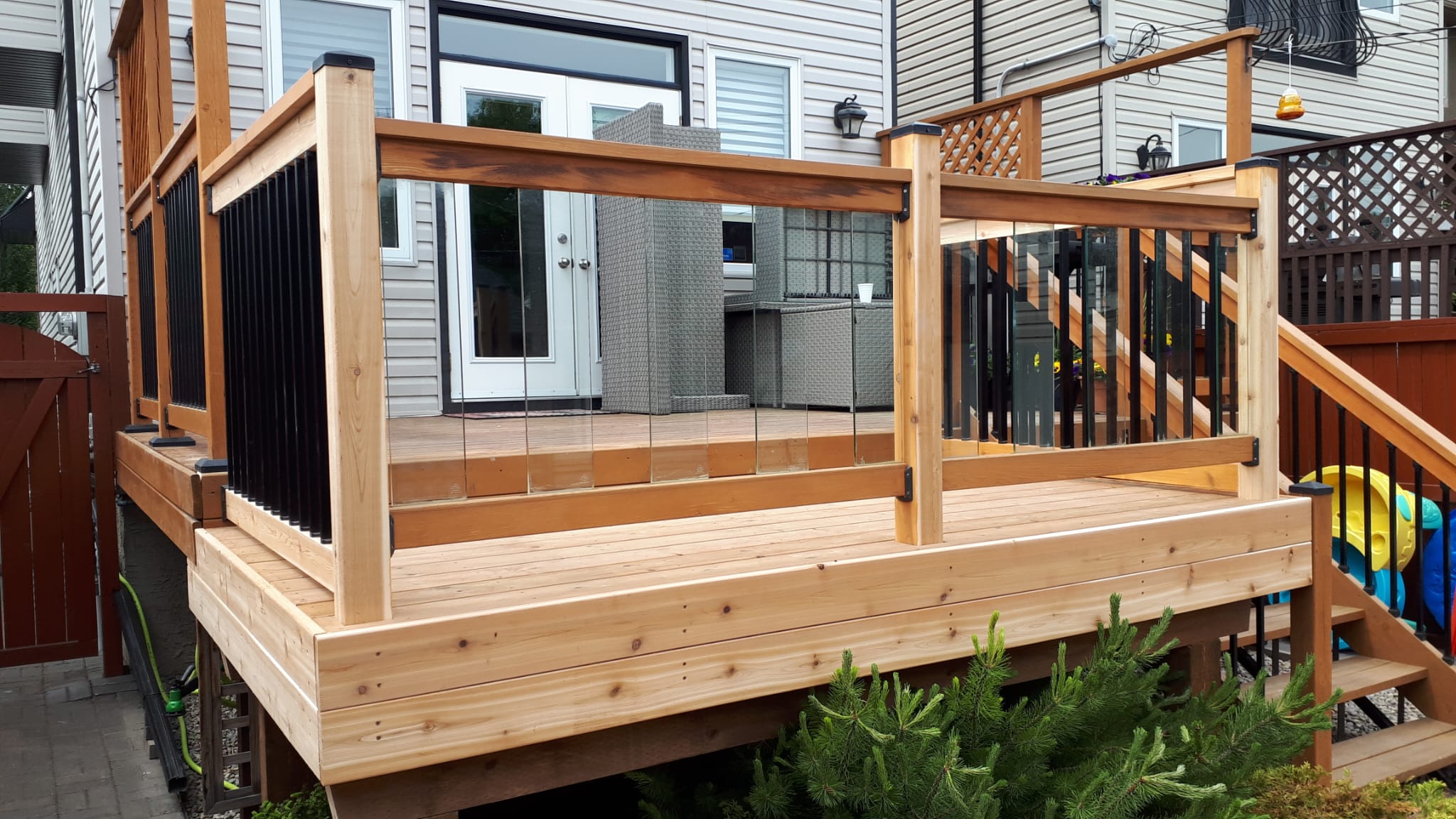 Contact us for a free estimate! We'll define deck size, layout, materials, and features such as railings, stairs, or seating.